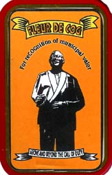 The prestigious Fleur de COG is awarded to recipients for reCOGnition of municipal valor above and beyond the call of duty. Ribbon color and flavor of presentation box varies, depending on specific induction criteria. |